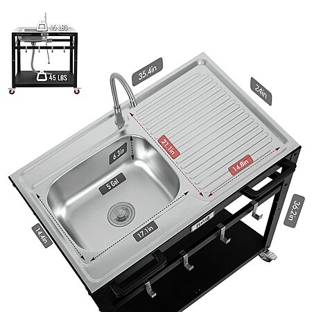 35” Feasto Outdoor Kitchen Stainless Steel Sink Station Grill Cart w/ Faucet, Hose Hook Up & Wheels $148.49 + Free Shipping