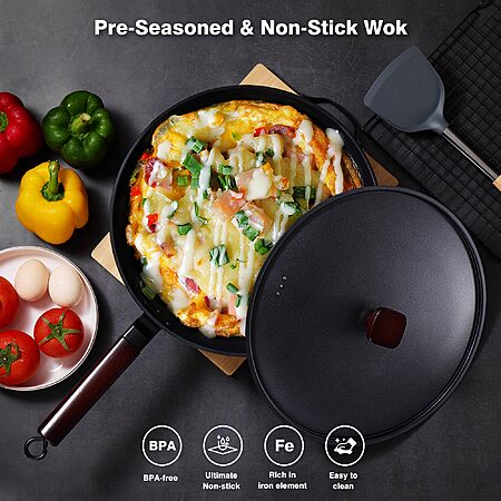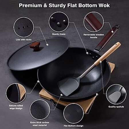 13" Teewe Carbon Steel Pre-Seasoned Nonstick Wok w/ Lid, Spatula and Dish Brush $20.27 + Free Shipping w/ Prime or on $35+