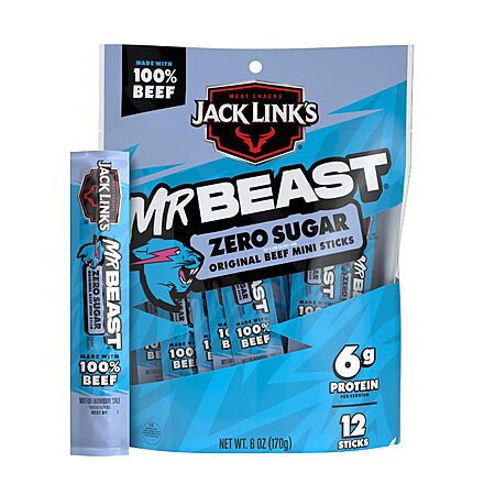 12-Count Jack Link's Mr. Beast Mini Meat Sticks Zero Sugar (6-Ounce) $6.64 w/ S&S + Free Shipping w/ Prime or on $35+