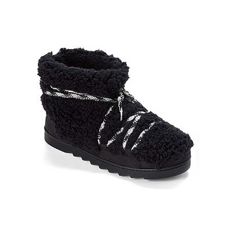 $10.19 Dearfoams Cozy Comfort Women's Lace Up Teddy Bootie Slippers (Black)