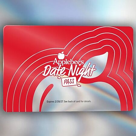 What does it get me? The Applebee's Date Night Pass® is perfect for monthly date nights at participating Applebee's Grill + Bar locations nationwide. It's valid 12 times from 3/2/26 -2/28/27! Passes will discount up to $50 on food and non-alcoholic beverages per use, every 24 hours. Date Night Passes® do not include tax, gratuity, alcohol, retail (including gift cards) or fees. Passes are not gift cards and are not refundable. Pass not valid through third-party delivery providers. Participating locations are subject to change.