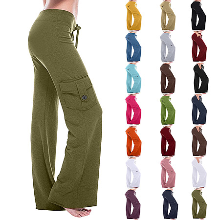 Womens Pants Workout Out Leggings Stretch Waist Pocket Yoga Plus Size Wide leg Pants $4.16