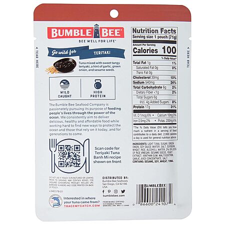 *BACK* 12-Pack 2.5-Oz Bumble Bee Wild-Caught Tuna Pouches (Teriyaki) $8.87 w/ S&S + Free Shipping w/ Prime or $35+