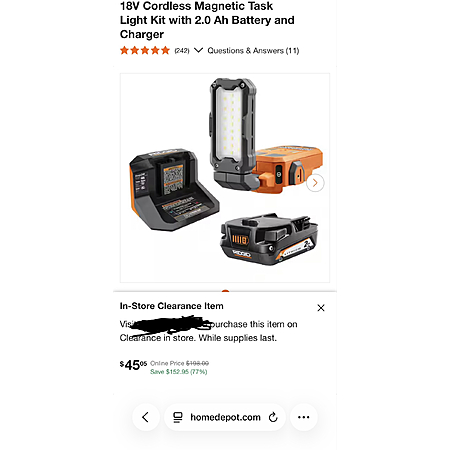 YMMV - Ridgid 18V Cordless Magnetic Task Light Kit with 2.0 Ah Battery and Charger $45.02