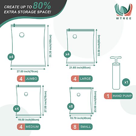20-Pack WTREE Vacuum Storage Space Saver Bags w/ Hand Pump $13.49 + Free Shipping w/ Prime or on $35+