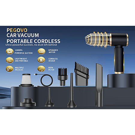 PEGOVO 15000PA Cordless Handheld Vacuum Cleaner & Air Duster w/ HEPA Filter & Accessories $14.99 + Free Shipping w/ Prime or on $35+