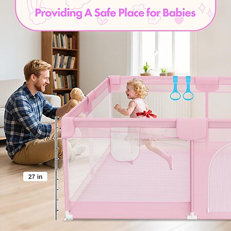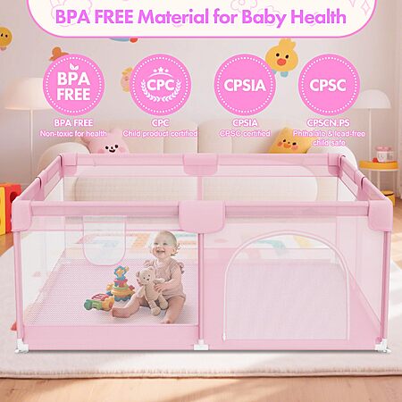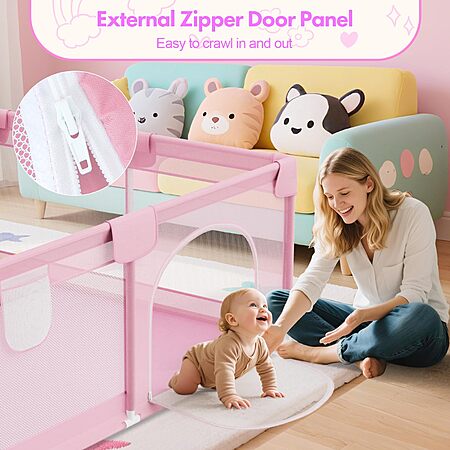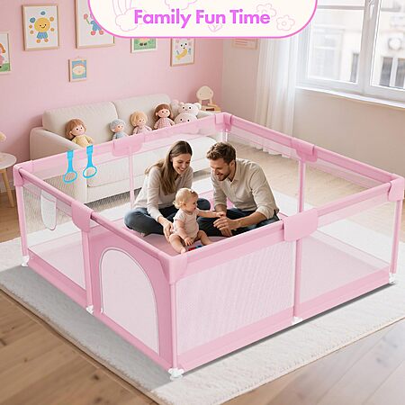 Deeteck 64" X 64" Sturdy Baby Playpen, Pink - $40.99 or Grey - $45.99
