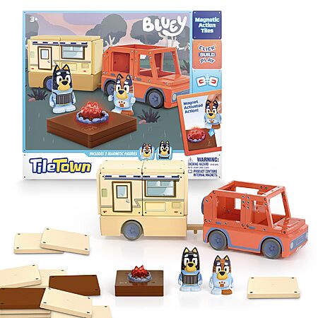 Tile Town Bluey Heeler Camper 13-Piece Magnetic Tile Playset - $19.80