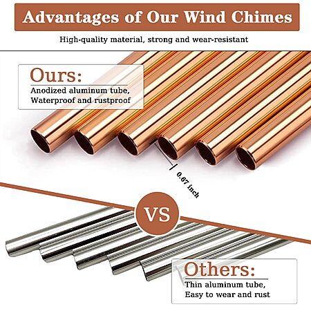 - High-quality Materials of Windchime: Pet wind chime is made of aluminum pipe and pine. The total length of the wind chime from the top's large S-shaped the heavy duty hook to the bottom's catcher is 28in. The wood is made of wear-resistant and non-cracking pine. The adjustable wooden striker allows you to adjust your favorite position at will. 6 classic anodized aluminum tubes have excellent corrosion resistance and wear resistance, and the length ranges from 8.5" to 12.3 in vary.