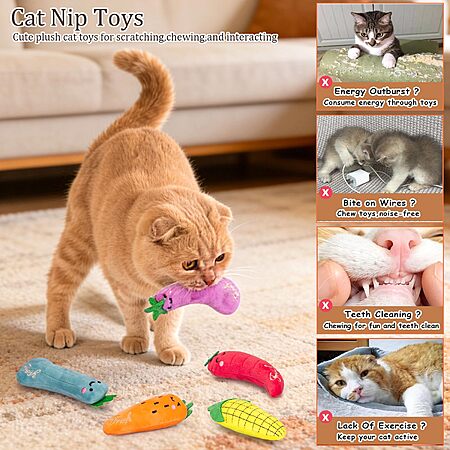 - Cute Vegetables Theme: Designed as adorable vegetables shape- perfect for batting, kick, and chewing - these toys satisfy your cat's natural hunting drive, reduce boredom, support mental engagement, and strengthen your bond through interactive fun
