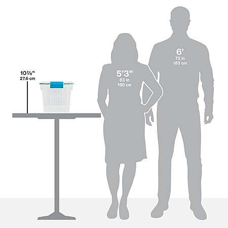 Features:- Sterilite 20 Quart Gasket Box, Weather-Resistant Small Clear Storage Bin with Latch Lid, Blue