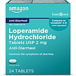 24-Count Amazon Basic Care 2mg Loperamide Hydrochloride Anti-Diarrheal Tablets