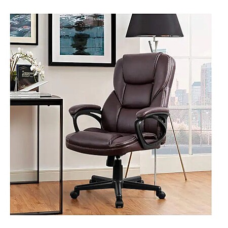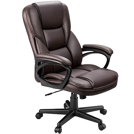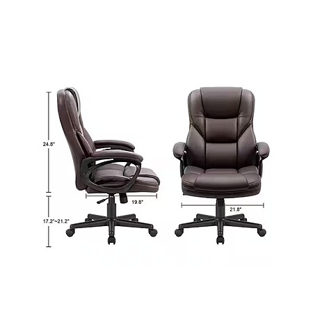 LACOO Big and Tall Brown Leather High Back Executive Chair with Swivel Seat (Color: Brown) $96.4