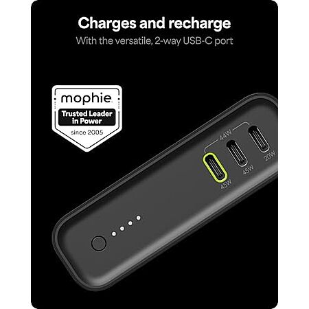 Model: Mophie Powerstation Pro 20,000mAh Power Bank (Gen 3) – Ultra-Fast USB-C PD, 45W Output, Charges 3 Devices, Up to 4 Phone Charges, LED Indicator, Premium Anodized Aluminum Body, Black