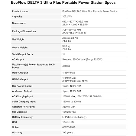 —DELTA 3 Ultra Plus: 3600W AC Output, 7200W Surge, 4600W with X-Boost