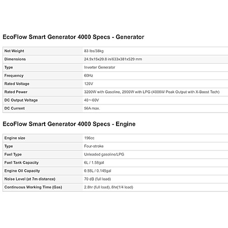 —Smart Generator 4000: Dual Fuel (LPG/Gasoline), 3200W DC Fast Charging