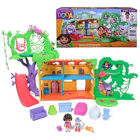 Dora, Explore & Play Rainforest Casita Playset w/ Dora & Boots Figures, Dollhouse Furniture & Bilingual Phrases for