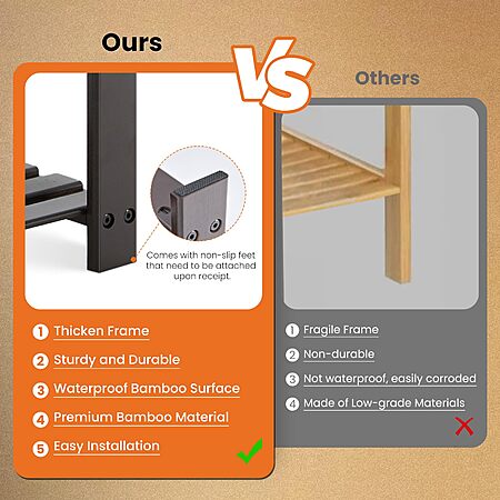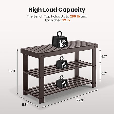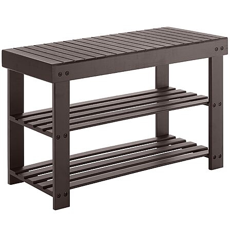 Sweetcrispy 3-Tier Shoe Rack Bench, Bamboo Entryway Storage Organizer, Shoes Stand, 286lb Capacity, 11.3 x 27.6 x 17.8 Inches, Chestnut - $24.92
