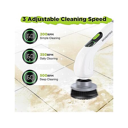 • IPX6 Waterproof: WORKPRO electric spin scrubber is fully waterproof, perfect for cleaning bathtubs, showers, and bathroom tiles without worrying about damp environments.
