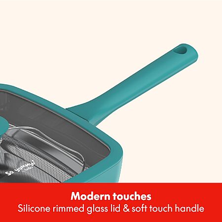 Model: So Yummy by bella 3 Piece Square Pan Set, Aluminum Cookware Set w EverGood™ Ceramic Nonstick Coating, Dishwasher Safe Silicone & Glass Lids, Oven Safe & All Stovetop Compatible, 4.5Qt, Moonstruck