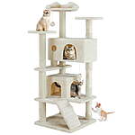 | Product Description: | Standing at 54 inches tall, this cat tree provides a vertical playground for your feline friend, encouraging natural behaviors like climbing, scratching, and exploring. Featuring multiple levels and cozy hideaways, the EDX CAT TREE invites your cats to explore and unwind in style. Plush perches and two snug condos provide ample space for lounging and sleeping, while a ramp and sisal-wrapped scratching posts cater to their natural instincts. Designed with stability in mind, our cat tree boasts a compact yet sturdy construction, fitting seamlessly into any corner of your home. It includes an anti-tilt device for added security, ensuring peace of mind as your cats climb and play. Easy to assemble with comprehensive instructions and tools provided, the EDX CAT TREE promises a hassle-free setup process. Treat your furry companions to the ultimate indoor adventure with a cat tree that prioritizes their comfort, safety, and enjoyment. Experience the difference with EDX CAT TREE—where every climb, stretch, and snooze is a testament to our commitment to quality and your cat's happiness. 【High-Quality Construction】 Crafted with the comfort of your pet in mind, our cat tree is constructed from premium, pet-friendly materials. The plush fabric covering provides a warm and snug space for your cats to unwind. The scratching posts are wrapped in durable natural sisal rope, guaranteeing both safety and durability. 【Exciting Cat Play Area】 Provide endless entertainment for your cats with this interactive playground, equipped with three scratching posts wrapped in sisal for promoting healthy claw care. The hanging balls with bells create an engaging playtime experience, simulating the excitement of hunting. A strategically positioned ramp introduces a playful climbing element, transforming each play session into a thrilling adventure that your cats will adore. 【Multi-functional Cat Tower】 Our indoor cat tree effectively combines cats' innate behaviors with the protection of furniture, offering comfortable cat condo, basket, hanging toys, and scratch posts. It meets cats' climbing and scratching instincts while preventing damage to household items. 【Secure & Compact Design】 Designed to be sturdy and space-efficient, this cat tree features a compact footprint of 50x50cm, ideal for smaller living spaces. Despite its size, it provides ample vertical space for 3-4 cats to play and relax together. To enhance safety, the anti-tilt device included allows you to anchor the tower to the wall, ensuring stability and preventing any potential tipping hazards. 【Simple Assembly】Recognizing the importance of convenience for pet owners, we have designed our cat tree for quick and effortless assembly. With clear instructions, pre-marked parts, and a complete tool set, you can assemble this cat tower easily and provide your cherished cat an instant playground. |