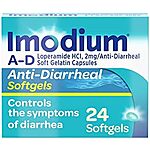 Amazon has 24-Count Imodium A-D Fast-Acting Anti-Diarrheal Softgels for $9.98 - 30% when you 'clip' the coupon on product page - 5% when you check out via Subscribe & Save = $6.49. Shipping is free with Prime or on $35+ orders.