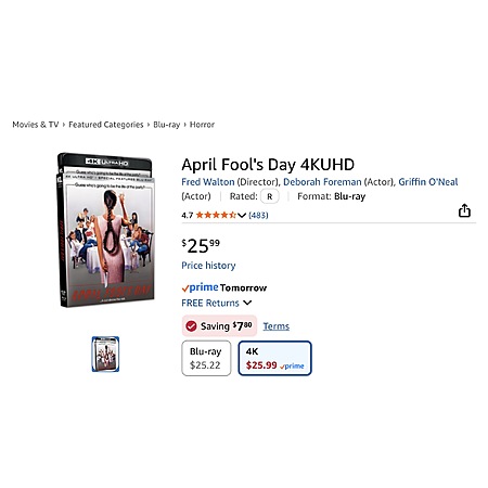 April Fool's Day 4K UHD $18.19 with coupon YMMV region specific Amazon