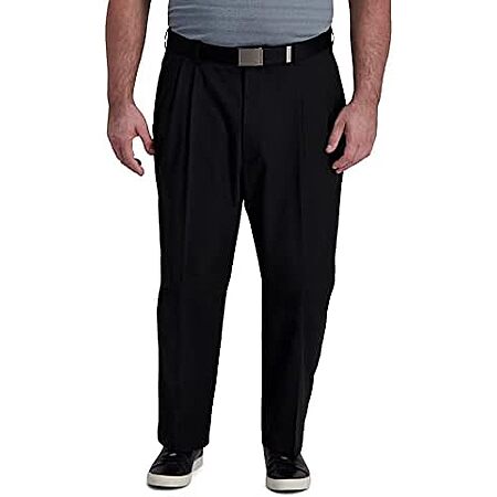 Model: Big & Tall Haggar® Cool Right® Classic-Fit Pleated Performance Flex Pants, Men's, Size: 48X34, Black