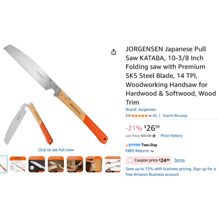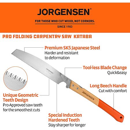 JORGENSEN Japanese Pull Saw KATABA, 10-3/8" Folding saw w/Premium SK5 Steel Blade, 14 TPI. YMMV - Coupon Price $24.99