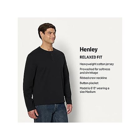 Amazon Essentials Men's 100% Cotton Jersey Long Sleeve Relaxed Fit Henley (5 Colors, Sizes XS-XX-Large) $9.99 + Free Shipping w/ Prime