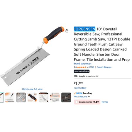 JORGENSEN 10" Dovetail Reversible Saw, 13TPI Double Ground Teeth Flush Cut Saw Spring Loaded Design Cranked Soft Handle. YMMV - Coupon Price $14.99