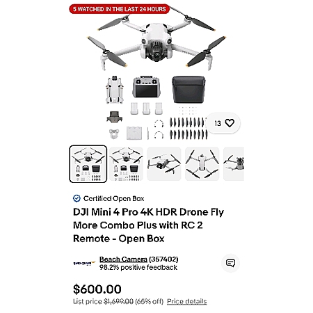 DJI Mini 4 Pro 4K HDR Drone Fly More Combo Plus with RC 2 Remote - Open Box