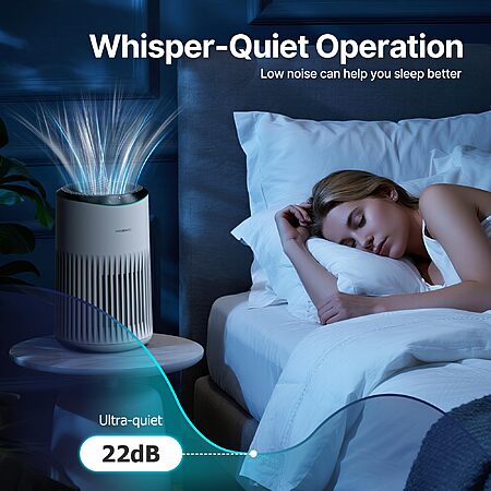 Model: Air Purifiers for Bedroom Home with Sleep Mode for Smoke Pet Dander Odors, Small Air Purifier with Fragrance Sponge, Blue Ambient Light, 23dB Quiet, 2 Pack White