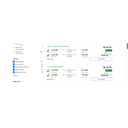 Korean Air/Asiana Airlines via Booking.com have round trip airfares travelling from Los Angeles (LAX) to Bangkok Thailand (BKK) for $580, making 1 stop in Seoul Korea both ways for up to 15 hours, depending on the flight you choose. These are economy fares that allow a personal item, a carry-on bag and 1 free checked bag. There is change/cancellation for a fee.