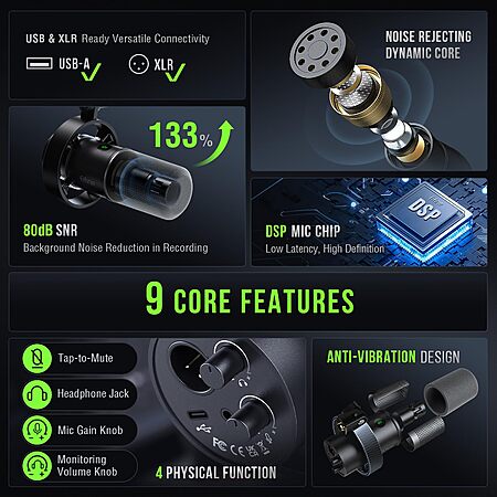 Model: FIFINE Dynamic Microphone, XLR/USB Podcast Recording PC Microphone for Vocal Streaming Voice-Over Gaming, Metal Mic with Mic Mute, Headphone Jack, Monitoring Volume Control, Windscreen-Amplitank K688
