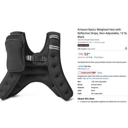 YMMV Amazon Basics Weighted Vest with Reflective Stripe, Non-Adjustable, 12 lb, Black $16.98 AC