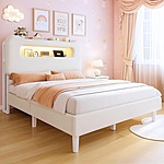 Model: DWVO Twin Size Bed Frame, Boucle Upholstered Bed with Storage Headboard, LED Bed with USB & Outlet, No Box Spring Needed, Cream