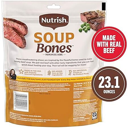 Model: Nutrish Soup Bones Premium Dog Chews with Real Beef and Barley, 11 Chews, Packaging May Vary (Rachael Ray)