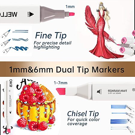 80-Color WELLOKB Dual Tip Alcohol Markers Set $10.49 + Free Shipping w/ Prime or on $35+