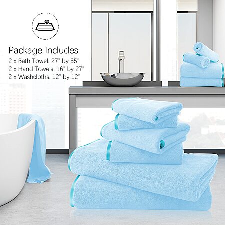 TENSTARS Luxury Silk Hemming Towel Set - Light Thin Quick Drying - 2 Bath Towels 2 Hand Towels 2 Washcloths (Aquamarine 6 Pieces) - $8.99