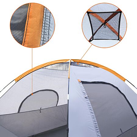 6-Person Amazon Basics 3-Season Dome Design w/ Rainfly Camping Tent (Orange Grey) for