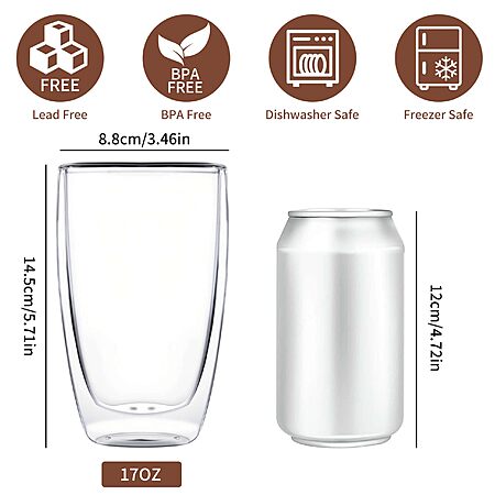 17-Ounce Double-Wall Insulated Glass Coffee Mugs $5 + Free Shipping w/ Prime or on $35+