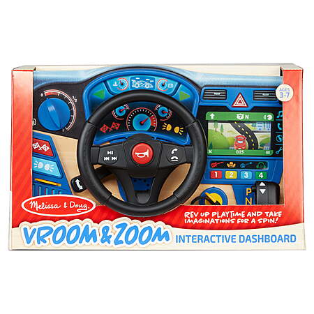 | Product Description: | Rev up playtime and take imaginations for a spin with this realistic play steering wheel mounted on a sturdy wooden dashboard with lights, sound effects, and moving parts, including a scrolling GPS! Turn the key to start and shift into drive to get the GPS rollingturn the wheel to keep the car on the road on the GPS display! The interactive dashboard includes hands-free buttons on the steering wheel for a phone and the radio, which plays clips of music for each of four stations. Movable parts and buttons let kids three and older beep the horn, adjust air vents, turn on signal, hazard, and headlight indicators, and rev the engine. Set a timer to count down to empty gas tank, and remove the gas cap when its time to fill up! A terrific toy for hand-eye coordination, imaginative play, and to help teach cause and effect. This product is certified by the Forest Stewardship Council. FSC certification ensures that products come from responsibly managed forests that provide environmental, social, and economic benefits, and that forests are protected for future generations. Please note that FSC certification applies to new inventory only (FSC C156584) Realistic play steering wheel mounted on a sturdy wooden dashboard with lights, sound effects, and moving parts, including a scrolling GPS Includes key start, gear shift, radio with 4 stations, horn, adjustable heat and A/C vents, signal, hazard, and headlight indicators, sport mode button, gas tank countdown timer, gas cap Turn the wheel to keep car on the GPS road; GPS automatically shuts off after 5 minutes Terrific for hand-eye coordination, imaginative play, and to help teach cause and effect Makes a great gift for preschoolers to school-aged kids, ages 3 to 7, for hands-on, screen-free play; product made with FSC-certified materials that support responsible forestry; applies to new inventory only (FSC C156584) |