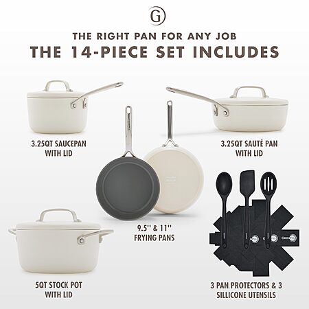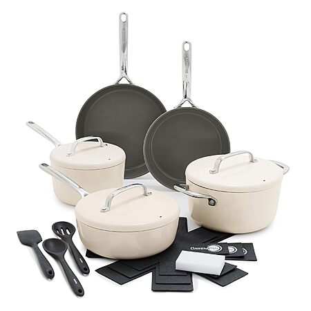 GreenPan GP5 Hard Anodized Healthy Ceramic Nonstick 14 Piece Cookware Set Induction, Cream $296.08