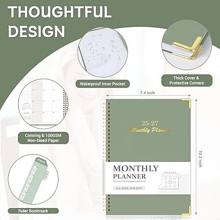 $3.99* | 7.4" x 10.2" Blugool Spiral Monthly Planner for July 2025 to June 2027 at Amazon