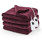 $42.42* | 90" x 84" Sunbeam Electric Royal Luxe Microplush Heated Blanket (Queen, Cabernet) at Amazon