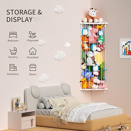 Amazon[amazon.com] has Befayoo Corner Mount Adjustable Height Stuffed Animal Organizer (White, Standard) for $11.69. Shipping is free w/ Prime or on $35+.