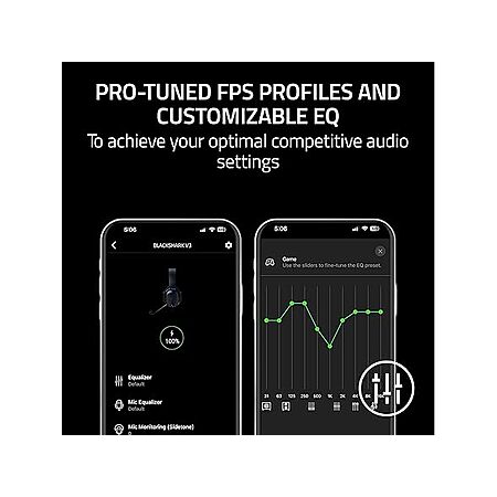 - PRO-TUNED FPS PROFILES AND CUSTOMIZABLE EQ — Unlock an audio advantage with game-specific EQ profiles, precision-tuned with Razer's roster of esports champions; create custom EQs, save it to the headset, and be ready to compete anytime