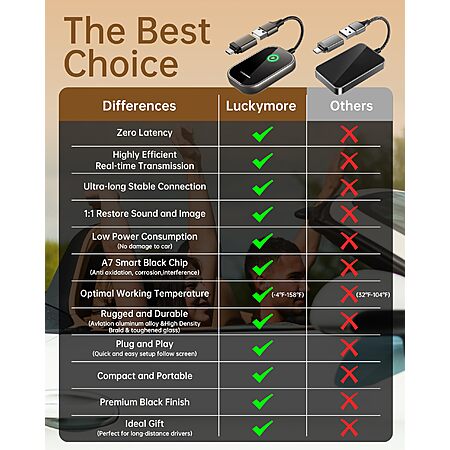 Model: Luckymore Wireless Carplay Adapter, Converts Wired to Wireless Carplay Dongle for Wireless Control Plug & Play Carplay Fit for Cars from 2017 & for Apple iPhone iOS 10+
