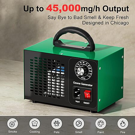 Model: Ozone Generator 45,000mg/h, Industrial/Home O3 Air Purifier Deodorizer for Areas of 2500 Square Feet - High Capacity Ozone Machine Air Ionizer Odor Clean for Rooms, Smoke, Cars, Pets (Green)